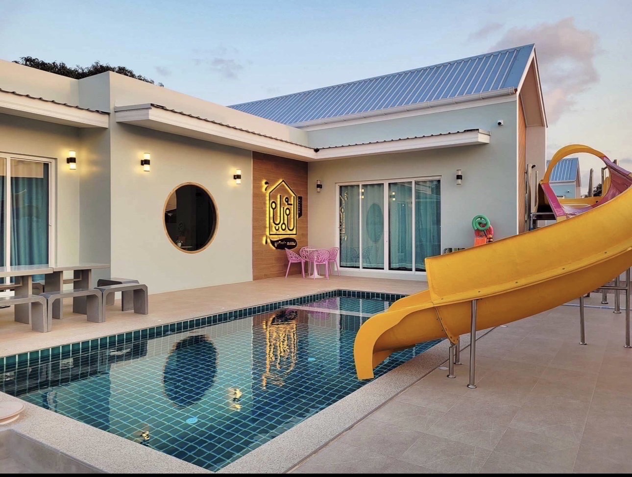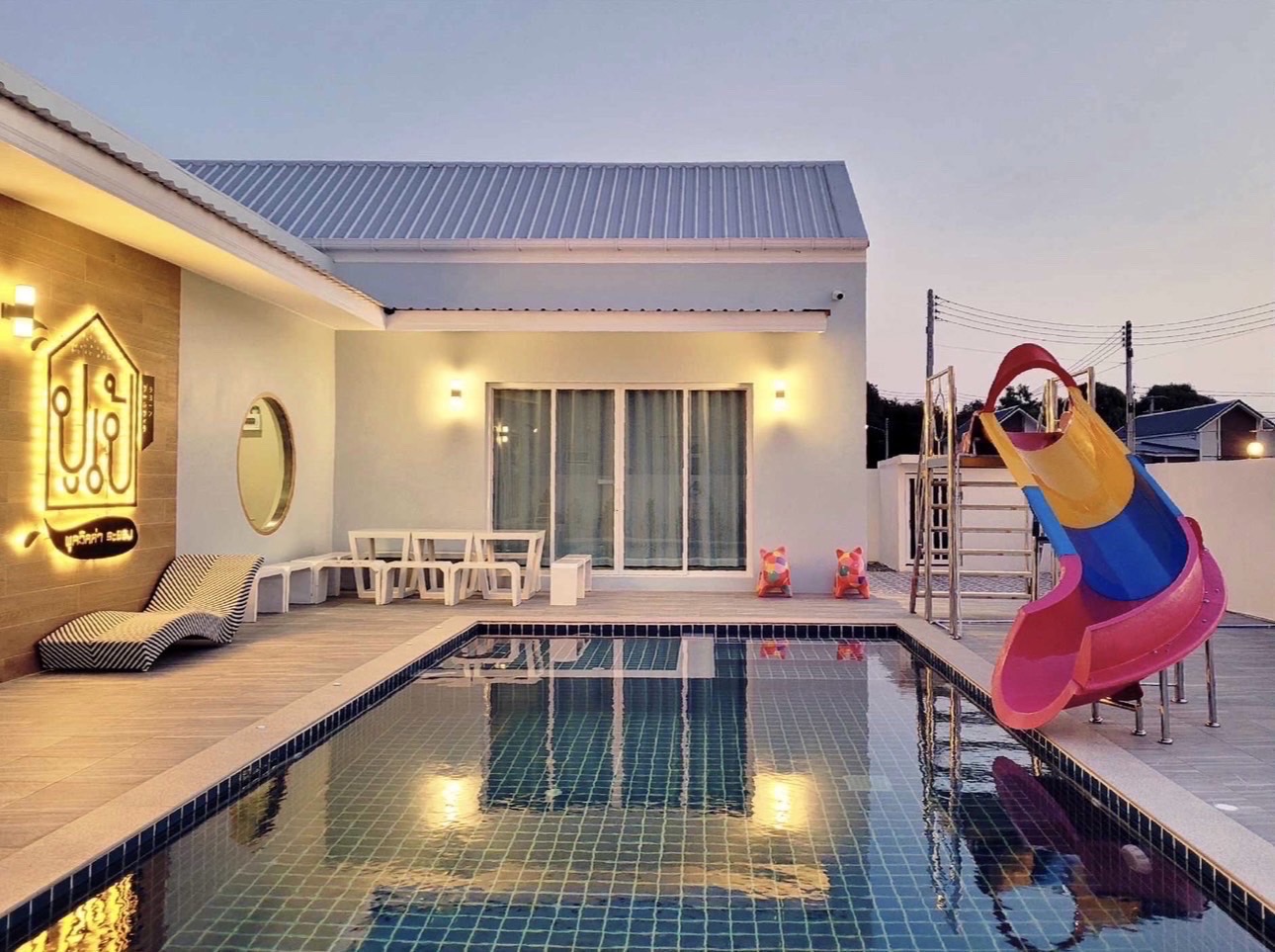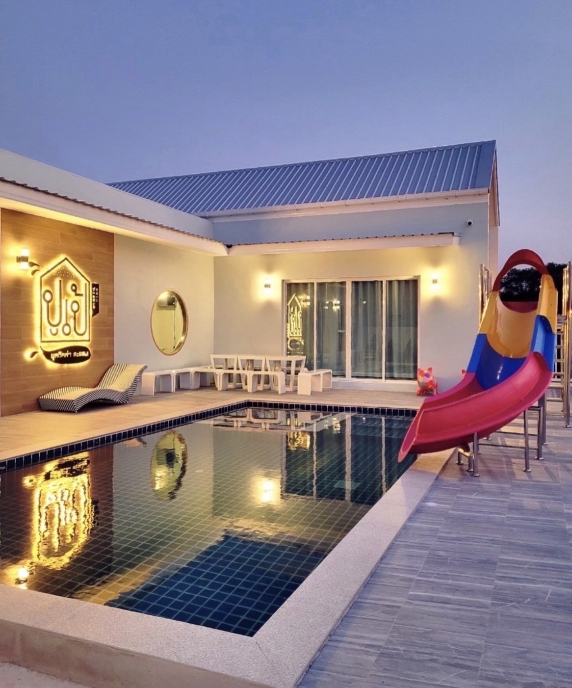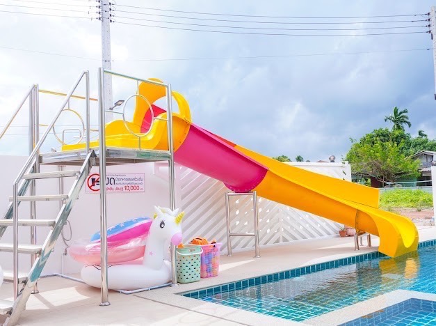สไลเดอร์-แยกสระเด็ก-พร้อมไฟในสระ
