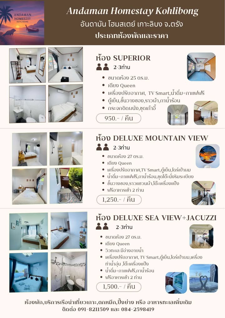 ต้องขออภัยทุกท่านด้วยนะคะ ปัจจุบันแอดมินไม่ได้ให้บริการจองที่พักแทนนักท่องเที่ยวแล้ว หากลูกค้าสนใจที่พักใดเป็นพิเศษ กรุณาติดต่อกับที่พักนั้นโดยตรงผ่านช่องทางที่แจ้งไว้ได้เลยค่ะ