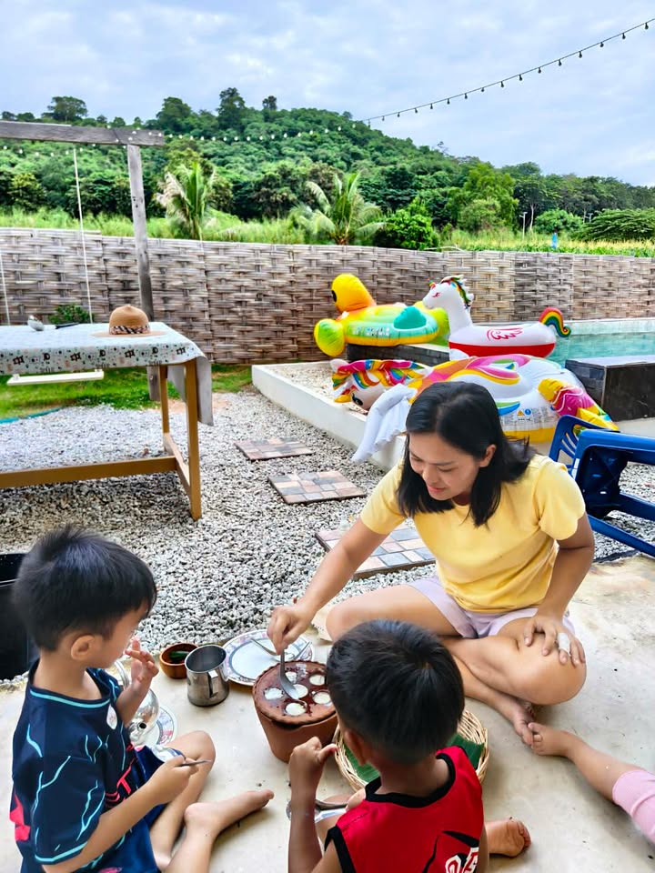 ▪ kid club กิจกรรมเสริม เช่น ทำไข่ครก ส้มตำ ไข่เจียว ระบายสีที่บ้านต้นไม้ ร้อยลูกปัด (มีค่าใช้จ่ายต่างหากต่อชุด)**ไข่ครกและส้มตำ ต้องสั่งจองล่วงหน้านะคะ