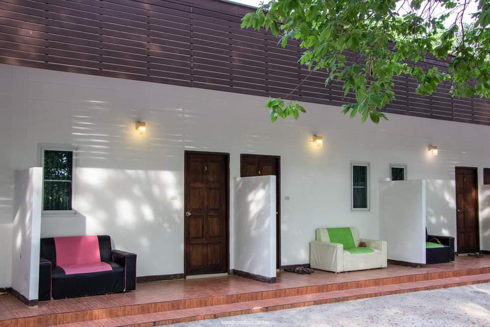 มีเครื่องเล่น สวนน้ำด้วย มีห้องพักหลายแบบ ทั้งบ้านพัก ห้องพัก และแพพักติดริมน้ำ มีอุปกรณ์ปิ้งย่างให้ฟรี คิดแค่ค่าถ่านถุงละ 50 บาท ที่พักในเมือง ห่างจากสะพานข้ามแม่น้ำแคว 4 กิโลเมตร เจ้าของน่ารัก