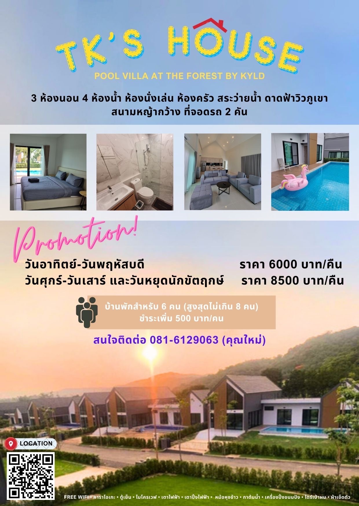 ที่พักเขาใหญ่เปิดใหม่สไตล์นอร์ดิก 3 ห้องนอน 4 ห้องน้ำ พร้อมสระว่ายน้ำ เหมาะกับครอบครัว เงียบสงบ บรรยากาศดี อากาศดีมาก เช้าๆเย็นๆ เหมาะแก่การเดินเล่นพักผ่อนอยู่ในหมู่บ้าน the forest by kyld มีความปลอดภัย รปภ.24 ชม. อุปกรณ์ครัวครบครัน
