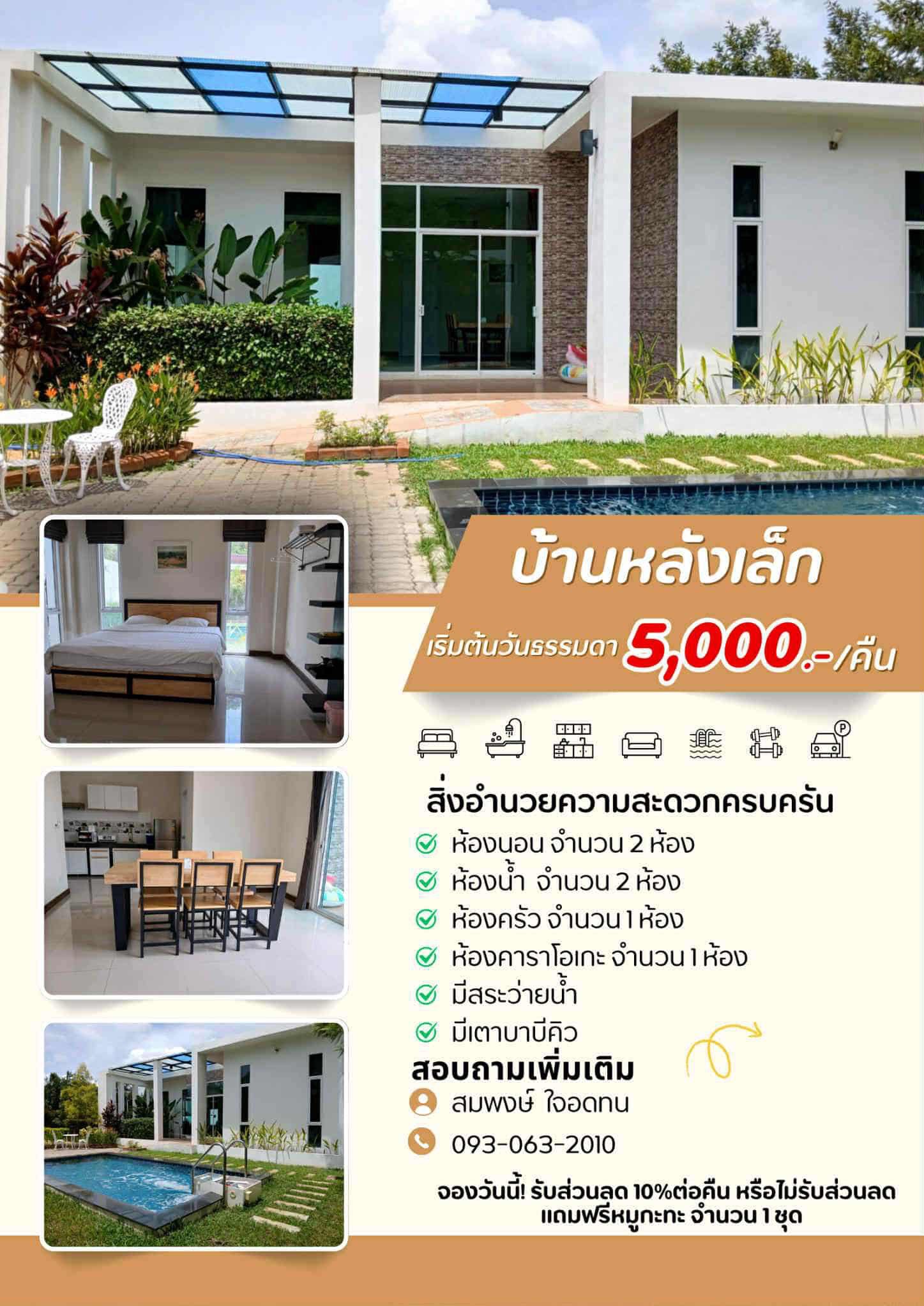วันธรรมดา 5,000 บาท/คืน วันเสาร์ 6,000 บาท