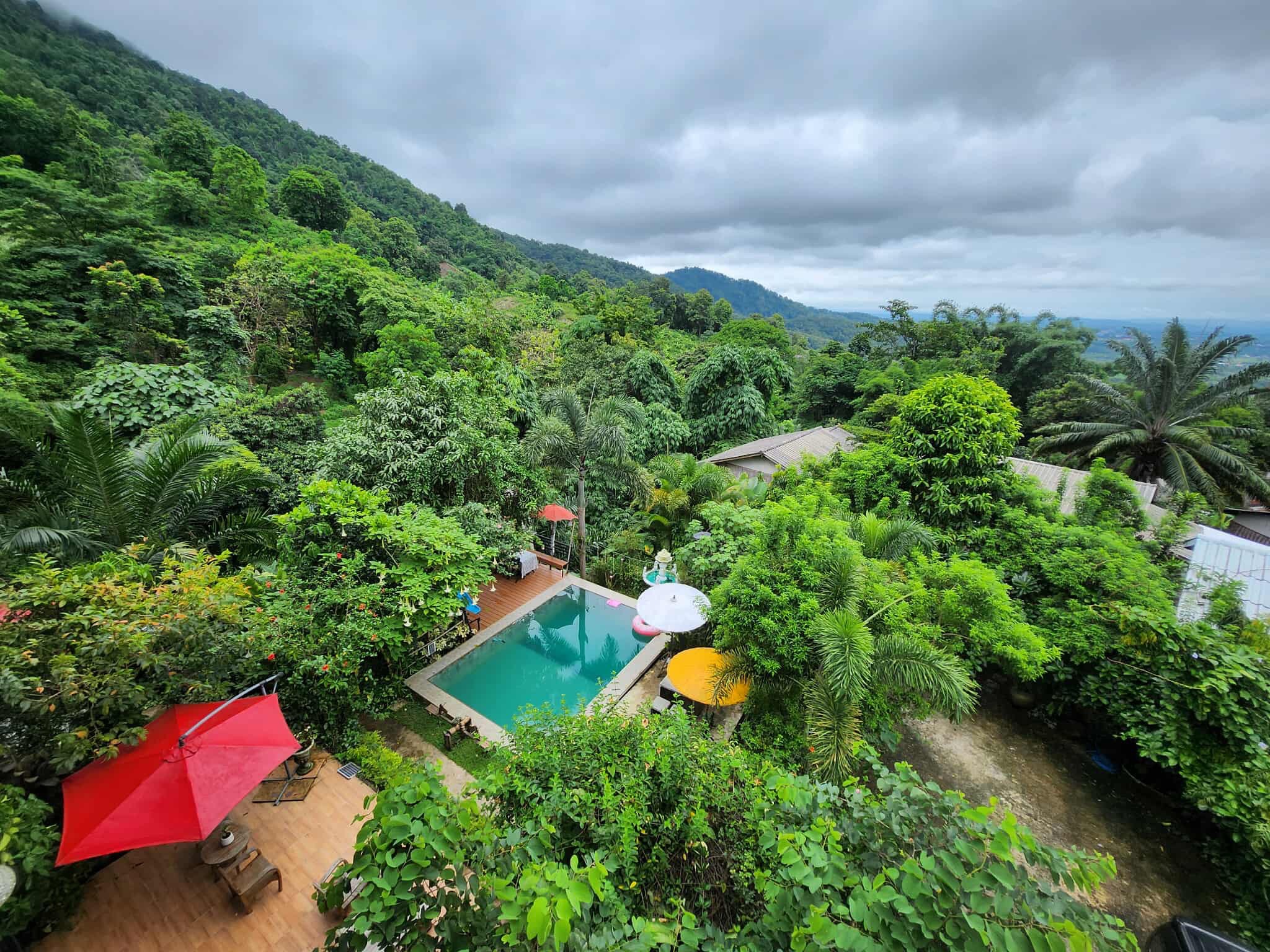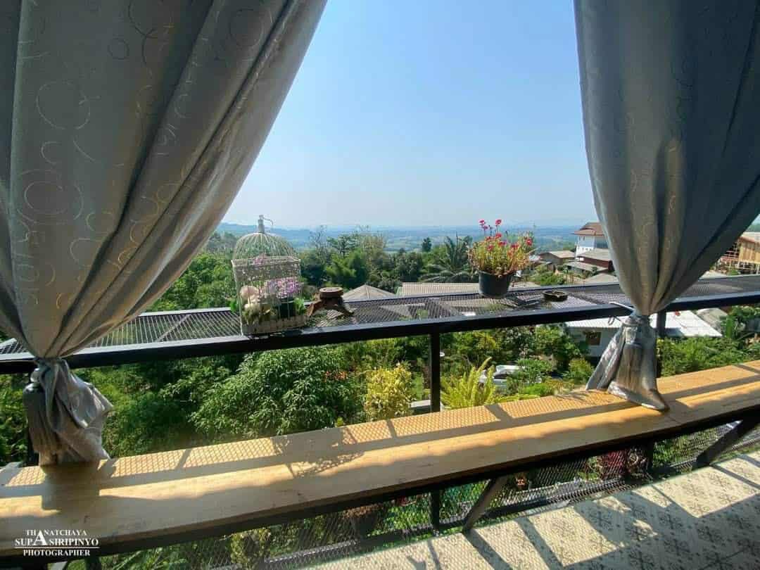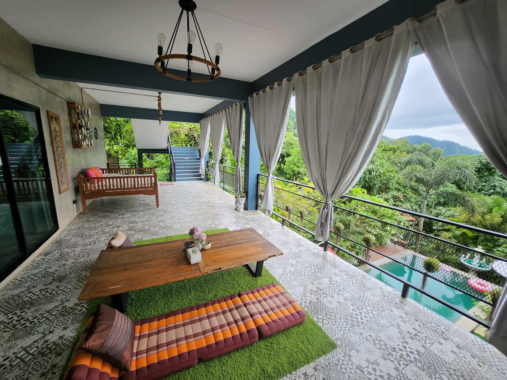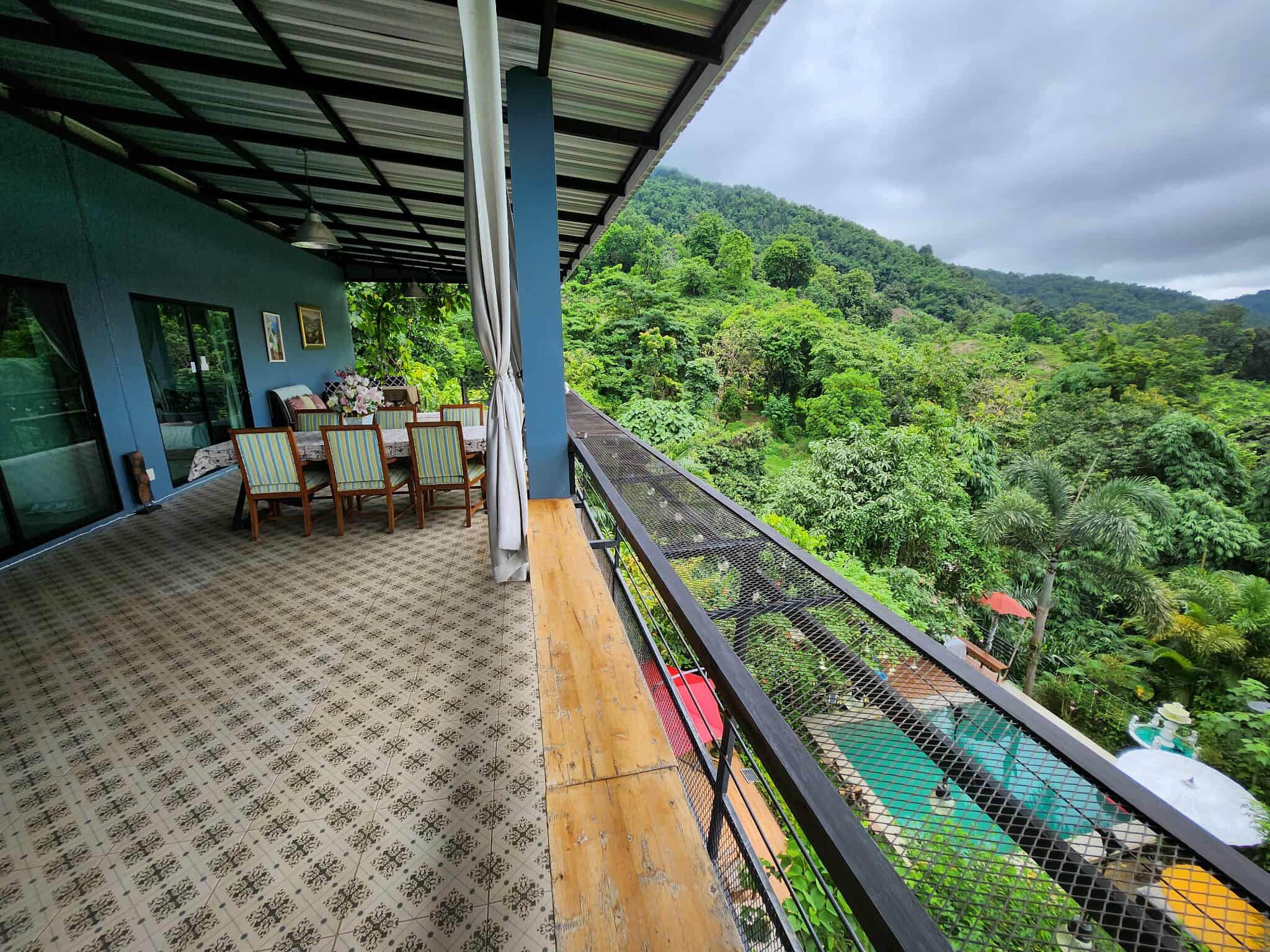 • มีระเบียงนั่งเล่นหน้าห้องขนาดใหญ่มาก พร้อมวิวเขา และสระว่ายน้ำ