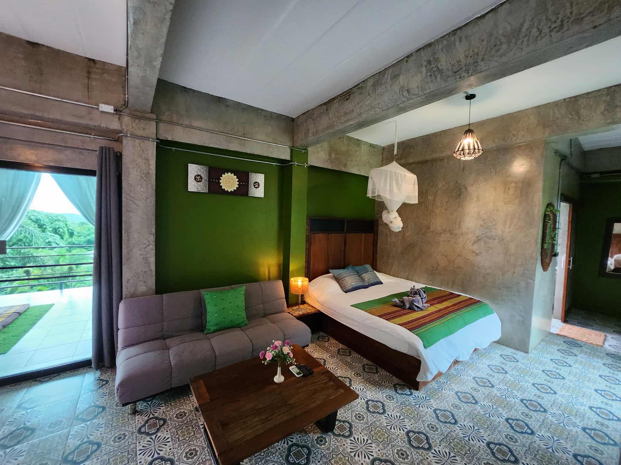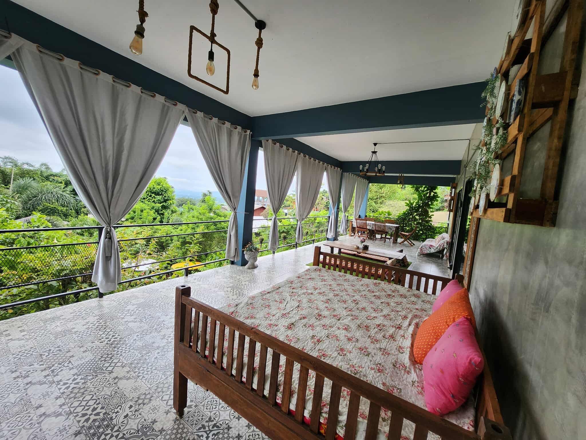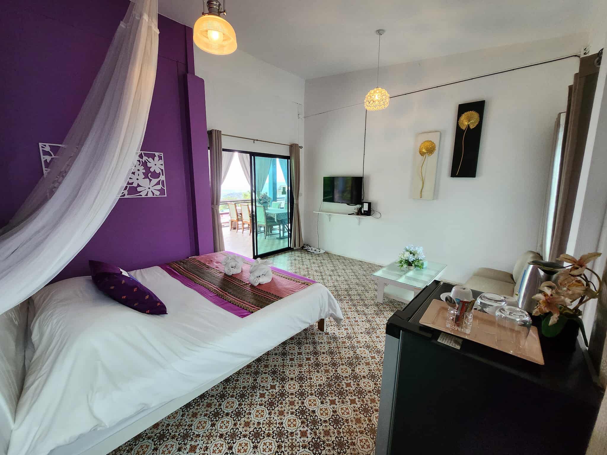 • มีระเบียงนั่งเล่นหน้าห้องขนาดใหญ่มาก พร้อมวิวเขา และสระว่ายน้ำ