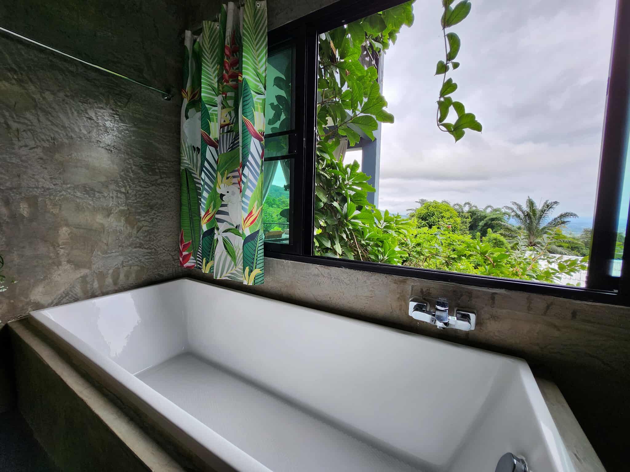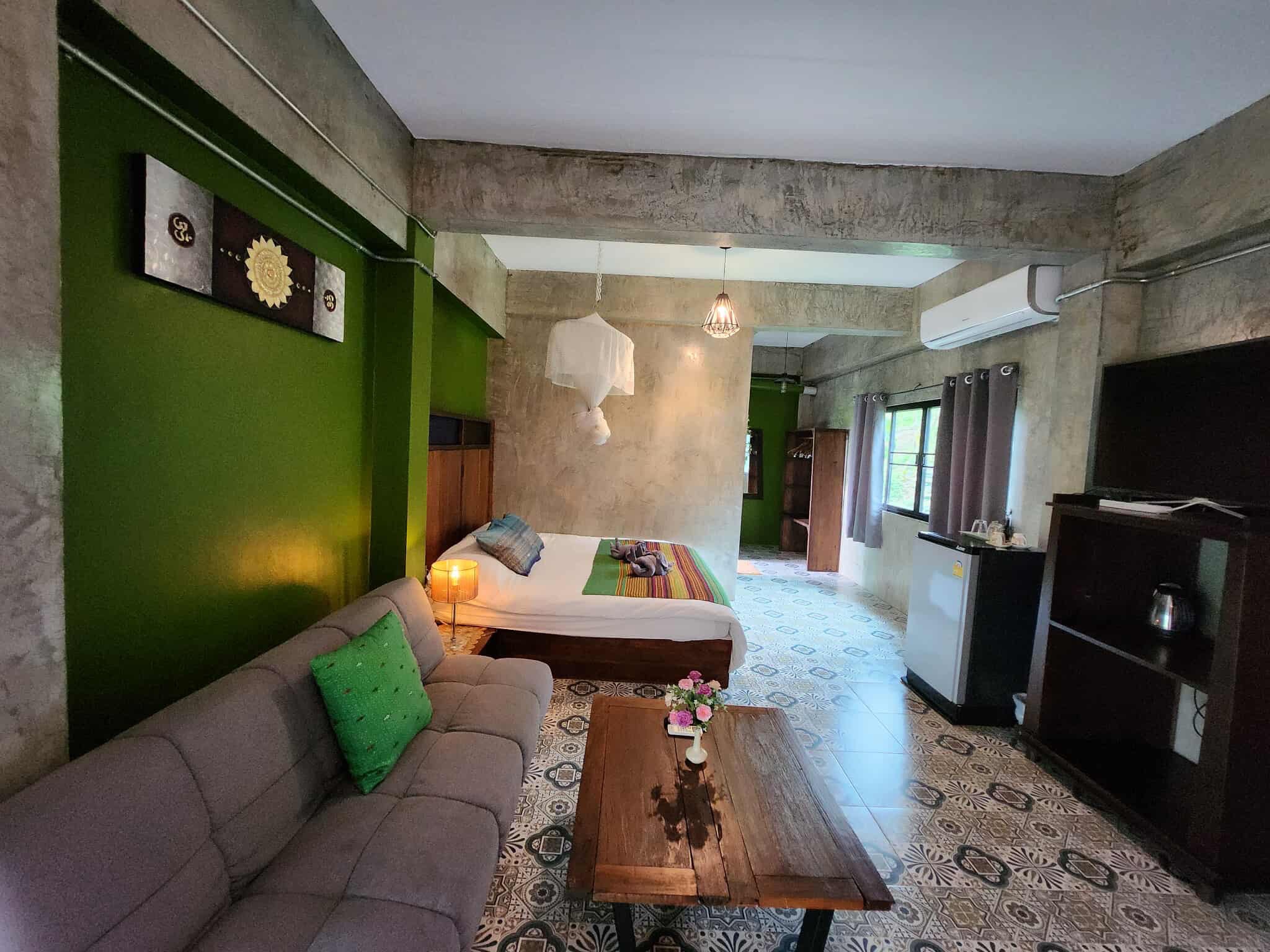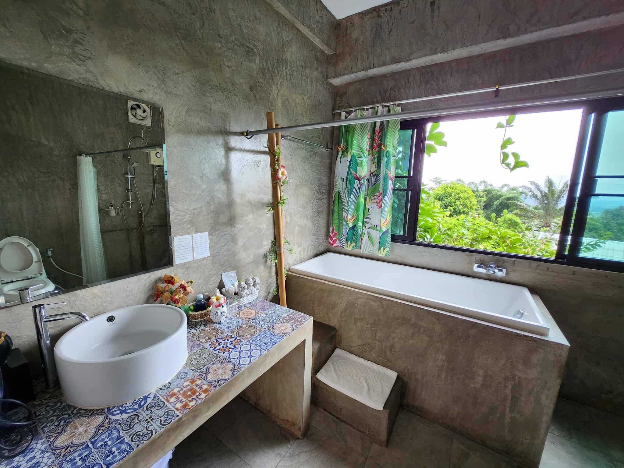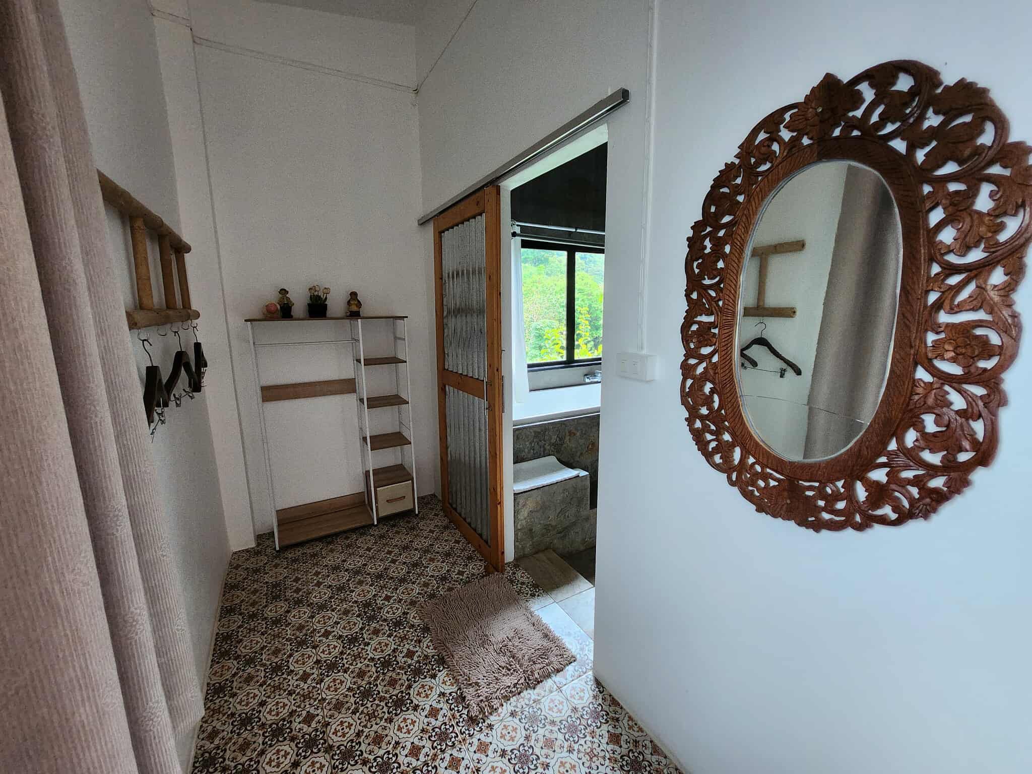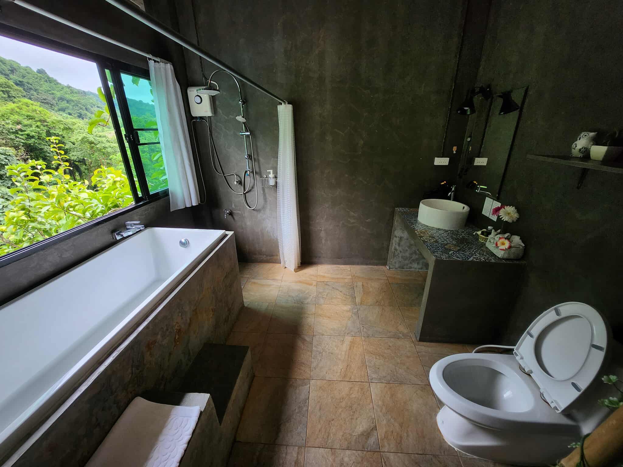 • ห้องนอนขนาด 4×8 เมตร ห้องน้ำกว้างมาก มีอ่าง พร้อมวิวภูเขา และธารน้ำตกค่ะ