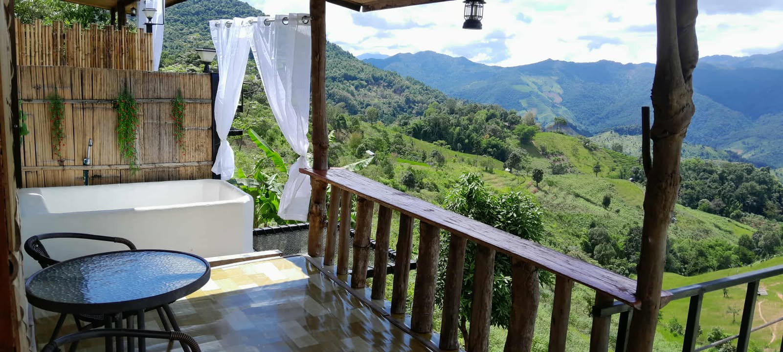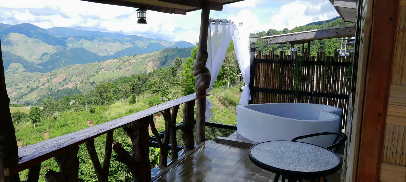 ▪ มีระเบียงและตาข่ายนั่งเล่นชมไร่กาแฟ