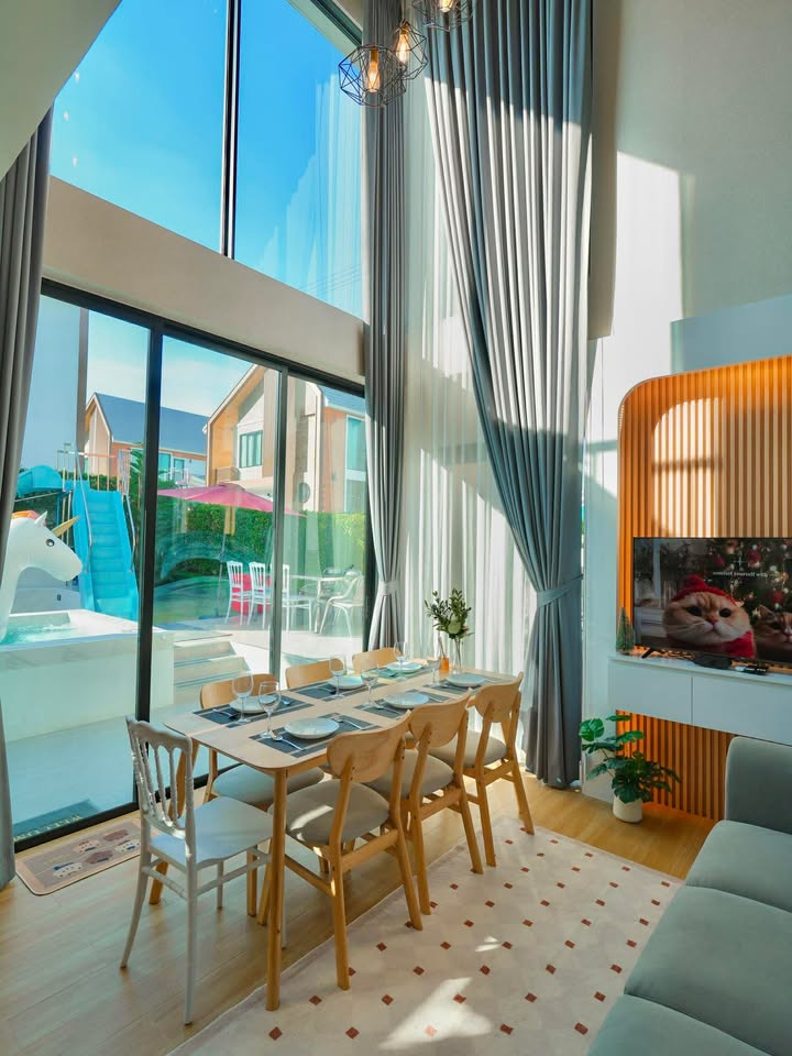 ▪ ครัวอุปกรณ์ครบ เคาน์เตอร์บาร์ และโต๊ะทานข้าวกระจกสูงสำหรับถ่ายรูปสวย ๆ