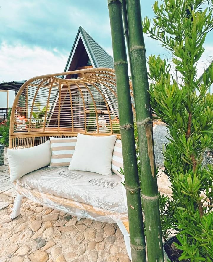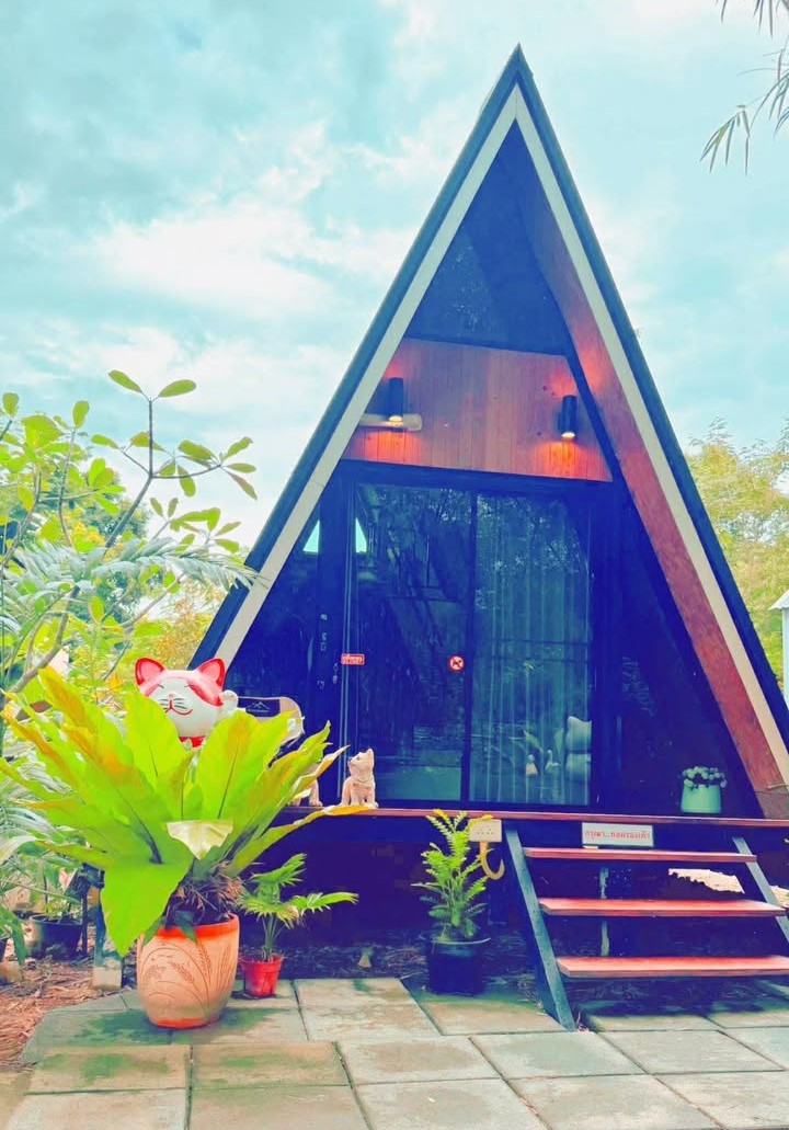บ้าน A-fram มีสองชั้น พักได้ 4 ท่าน