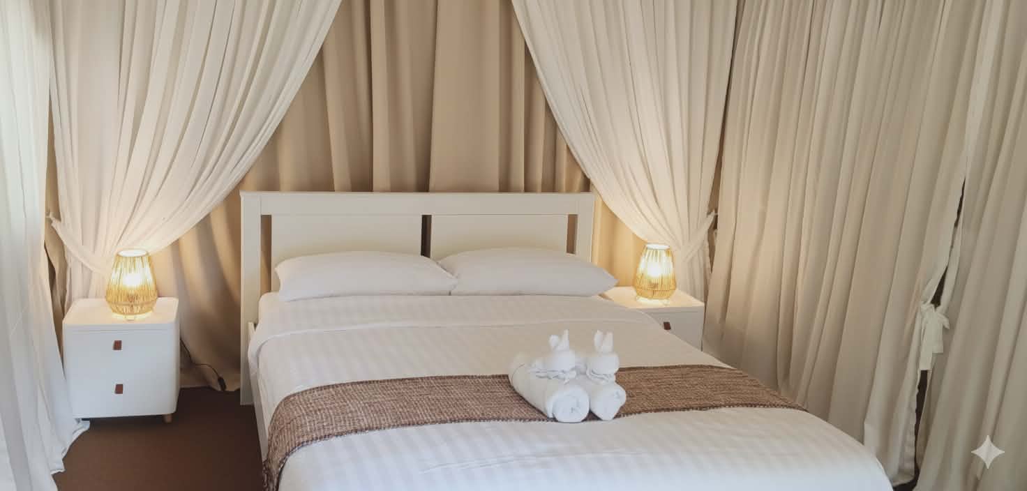 ให้บรรยากาศ หวาน ละมุน โรแมนติก ไม่ใช่เต็นท์ทั่วไป แต่เป็นห้องพักหวานๆ กลางธรรมชาติ