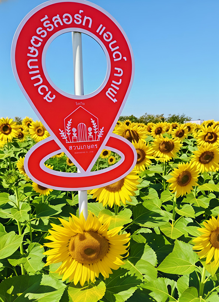 ■ ที่นี่คุณจะได้สัมผัสกับความเขียวขจีของต้นไม้และดอกไม้ทานตะวันที่ปลูกเรียงรายอย่างสวยงาม