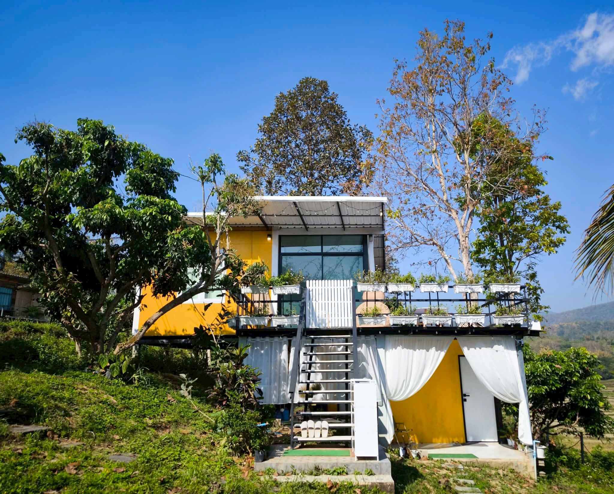 ■ The living space is on the second floor with an open balcony, ideal for enjoying mountain views, stargazing, reading, or simply unwinding.