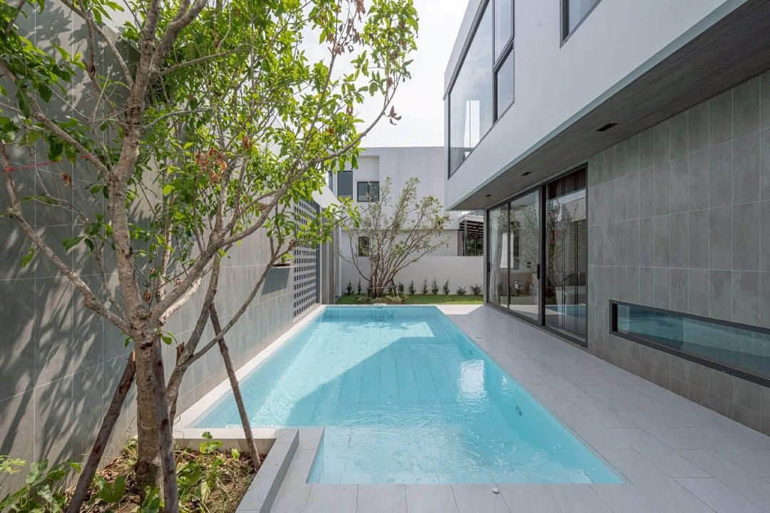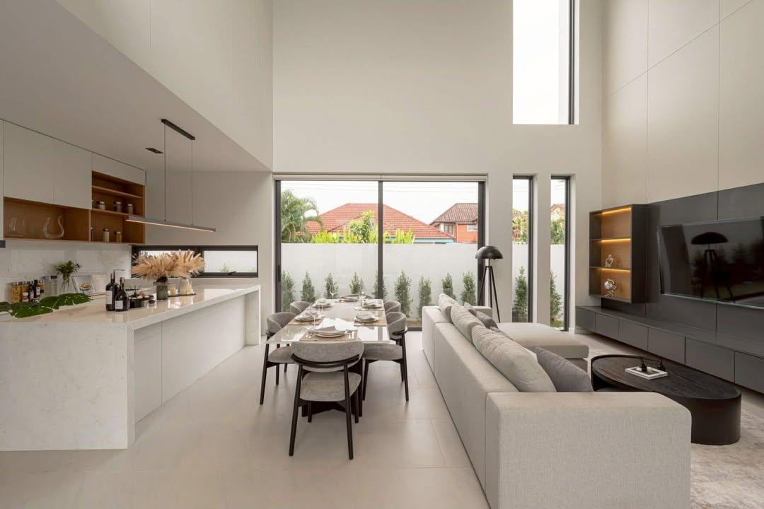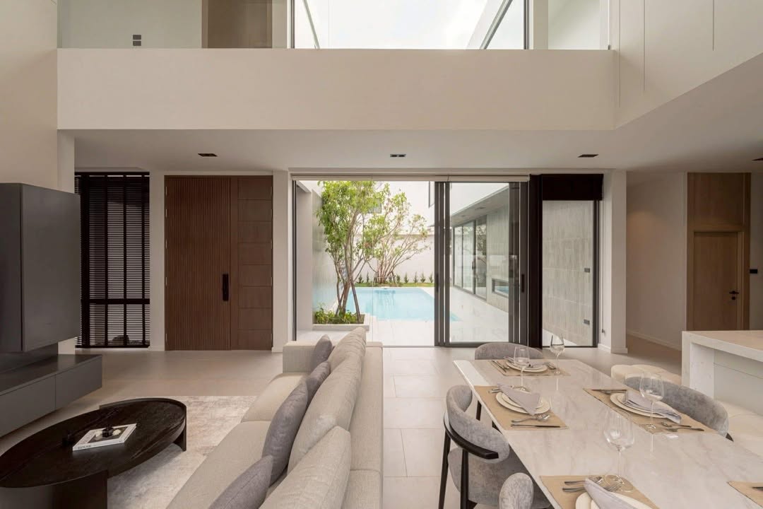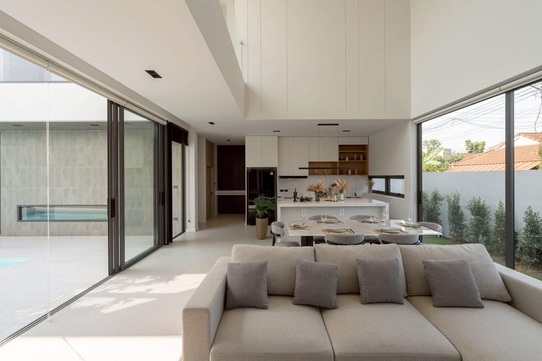 บ้านหรูเรียบ สะอาดตา พื้นที่กว้าง เชื่อมสวนและสระว่ายน้ำส่วนตัวอย่างลงตัว