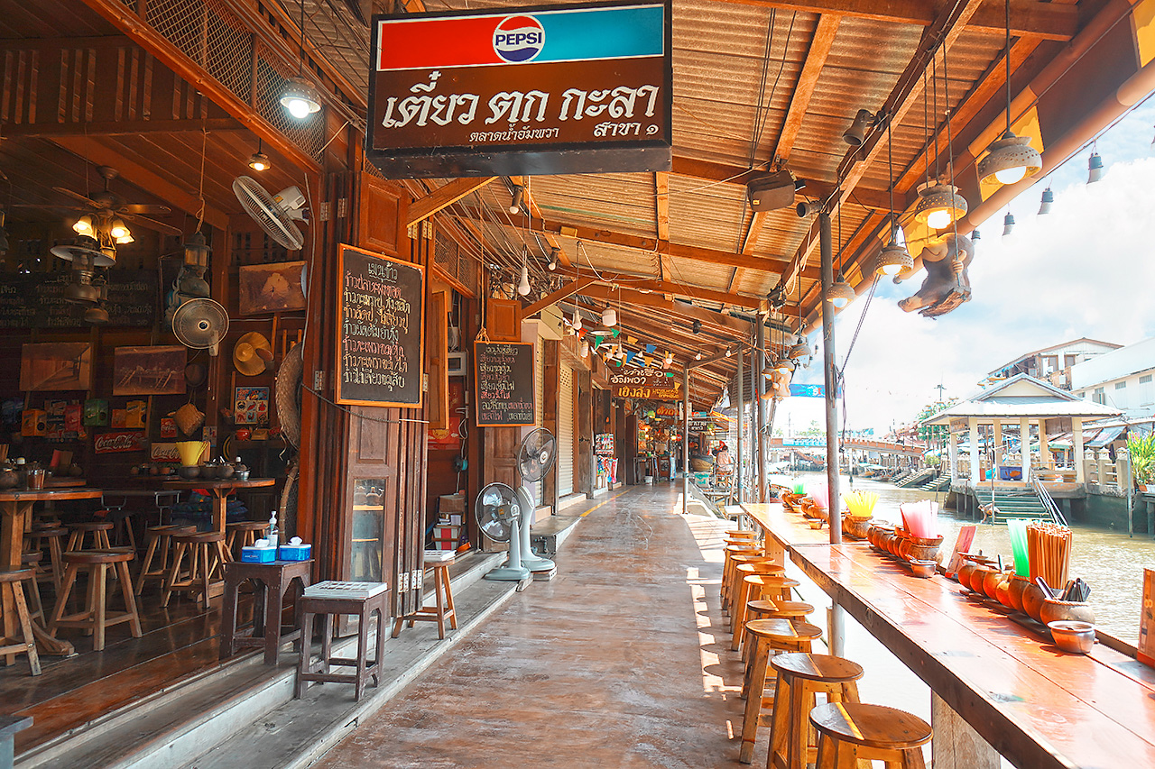 บรรยากาศตลาดน้ำอัมพวา
